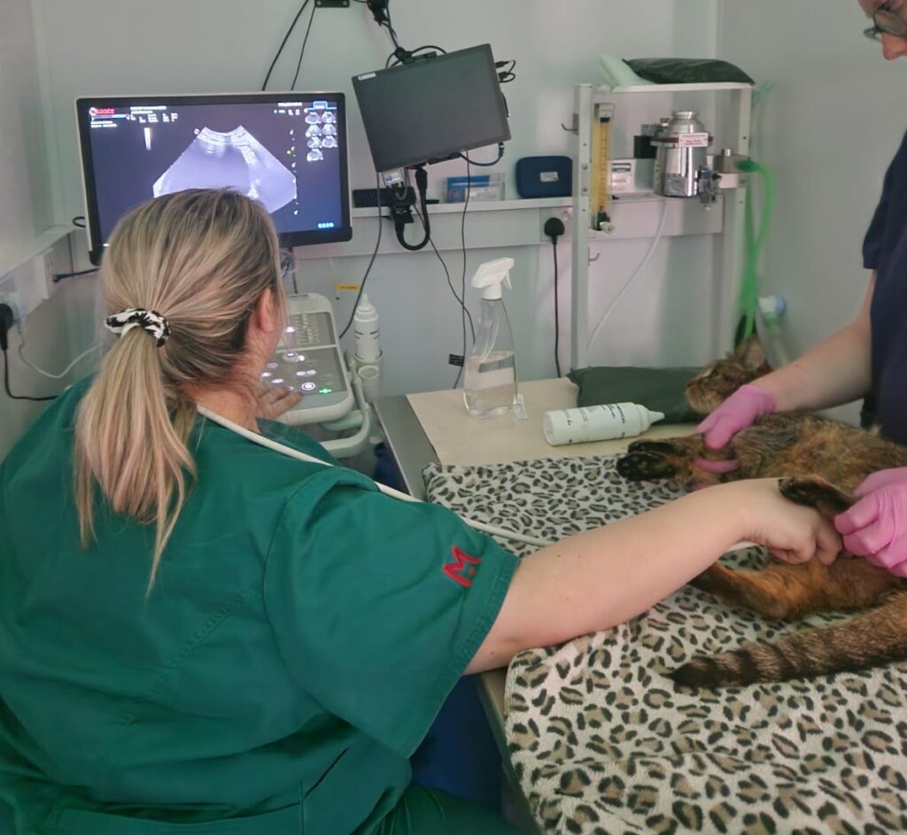Clipping fur is a simple but important step in preparing patients for ultrasound examinations. Ultrasound works by sending sound waves through the body to create pictures. The quality of an ultrasound image and therefore how accurately we can interpret it depends on how well the sound waves can move between the probe and the patient’s skin. Fur, dirt, and air block these waves, preventing the machine from producing clear images. Properly clipping and preparing the skin ensures we get the best possible, diagnostic-quality images.